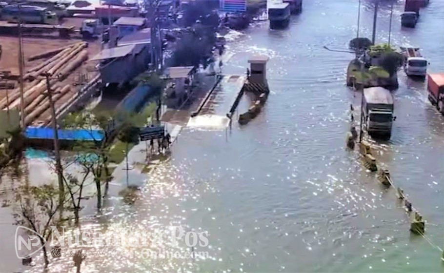 SEMARANG, NusantaraPosOnline.Com-Banjir kembali menerjang kawasan Pelabuhan Tanjung Emas Semarang. Kedalaman air mencapai kisara satu meter. Senin (20/6/2022).