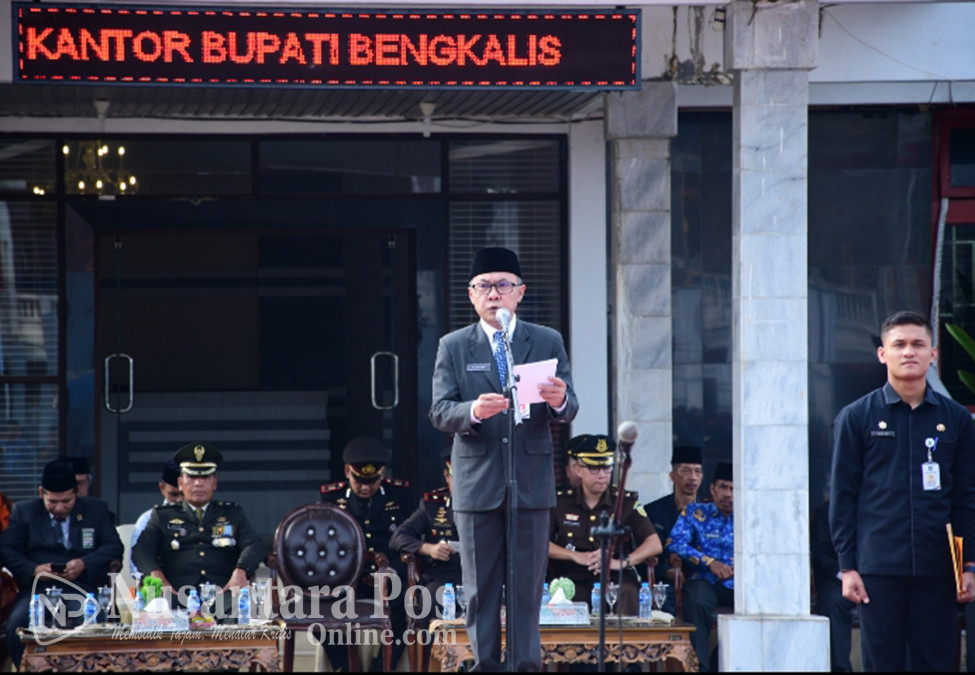 BENGKALIS, NusantaraPosOnline.Com-Bupati Bengkalis diwakili Sekda Ersan Saputra TH memimpin upacara memperingati Hari Lahir Pancasila 2024, di halaman Kantor Bupati, Sabtu. 1 Juni 2024.
