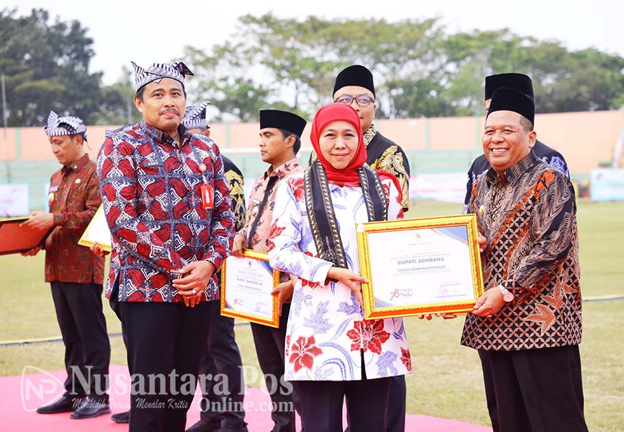 Wakil Bupati Jombang, Salmanudin, yang hadir mewakili Bupati Jombang Warsubi, menerima langsung penghargaan tersebut dari Gubernur Khofifah Indar Parawansa.