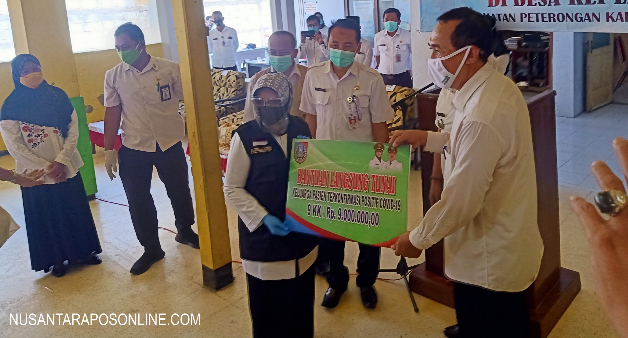 JOMBANG, NusantaraPosOnline.Com-Bupati Jombang, Hj Munjidah wahab menyerahkan bantuan sosial (Bansos) kepada warga desa Keplaksari, Kecamatan Peterongan, Kabupaen Jombang, yang keluarganya terkonfirmasi positif Covid-19 dan sedang menjalani isolasi. Rabu (1/7/2020)