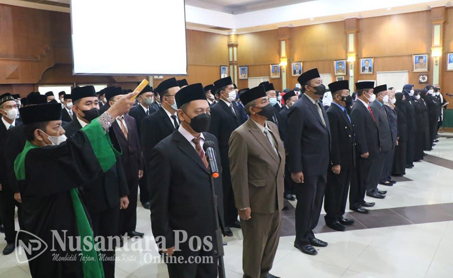 JOMBANG, NusantaraPosOnline.Com-Pelantikan dan Pengambilan Sumpah/Janji Pejabat Pimpinan Tinggi Pratama, Pejabat Administrator, Pejabat Pengawas dan Kepala Sekolah lingkup Pemerintah Kabupaten Jombang digelar diruang Bung Tomo – Pemkab Jombang, pada Jum’at (1/7/2022) pagi.