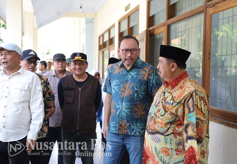 JOMBANG, NusantaraPosOnline.Com-Bupati Jombang, Warsubi, bersama Wakil Bupati Salmanudin, mendampingi perwakilan dari Kemensos RI yang diwakili oleh Sekretaris Jenderal (Sekjen) Kemensos, Robben Rico, dan Direktur Jenderal (Dirjen) Rehabilitasi Sosial Kemensos RI, Supomo, meninjau / survei lokasi lahan yang telah disiapkan untuk pembangunan Sekolah Rakyat (SR), di Desa Denanyar, pada Jumat (4/4/2025) pagi.