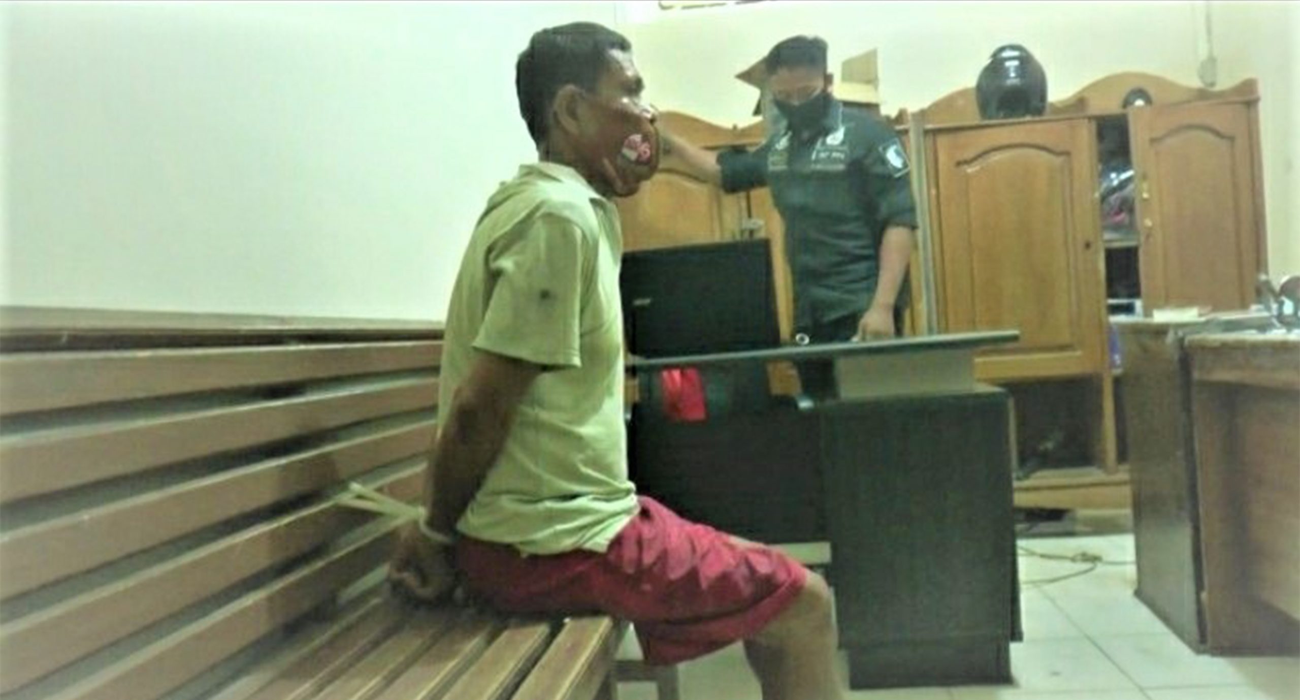 Lelaki tua diduuga tiga kali cerai ini ditangkap setelah cukup lama kabur usai memperkosa korban di rumahnya. Pelaku memperdaya korban dengan modus meminta bantuan untuk mencuci piring dan mengiming-imingi uang jajan.