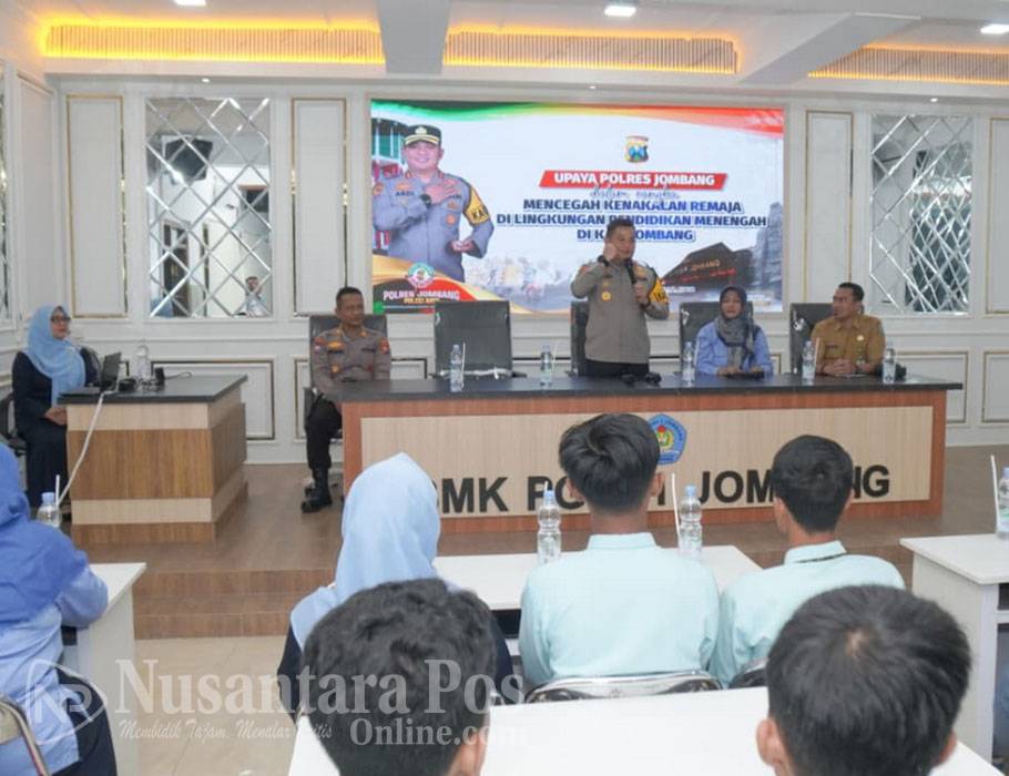 JOMBANG, NusantaraPosOnline.Com-Kapolres Jombang AKBP Ardi Kurniawan, memberikan arahan kepada pelajar SMK PGRI 1 Jombang terkait pencegahan kenakalan remaja di lingkungan sekolah, pada Selasa (10/2/2026) pagi.