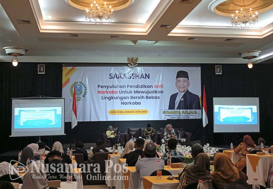 JOMBANG, NusantaraPosOnline.Com-Guna mencegah meluasnya penyalahgunaan narkoba di kalangan masyarakat, khususnya generasi muda, anggota DPRD Provinsi Jawa Timur dari Fraksi Partai Golkar, Sumardi, SH, MH, menggelar Sarasehan ini mengusung tema “Penyuluhan Pendidikan Anti Narkoba untuk Mewujudkan Lingkungan Bersih Bebas Narkoba”.