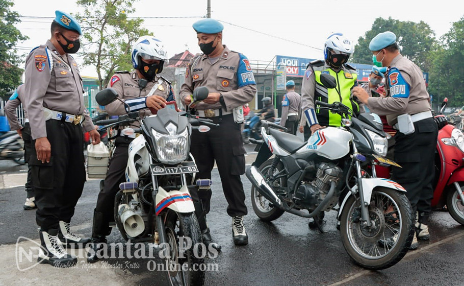 Sejumlah personel yang memasuki Mapolres Jombang satu persatu diperiksa, mulai dari kesiapsiagaan, sikap dan perawakannya, dokumen pribadi penting yang harus selalu melekat pada setiap personel serta kelengkapan surat dan kondisi kendaraan dinas.