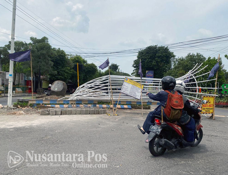 Beberapa hari yang lalu, bangunan monumen yang berbahan dasar dari besi tersebut telah ditabrak oleh kendaraan yang mengalami kecelakaan. Tetapi dari pantauan dilapangan sampai saat hari ini belum ada perbaikan dari pihak penyedia jasa. Dan pengerjaan proyek tersebut sekarang terhenti atau mangkrak.
