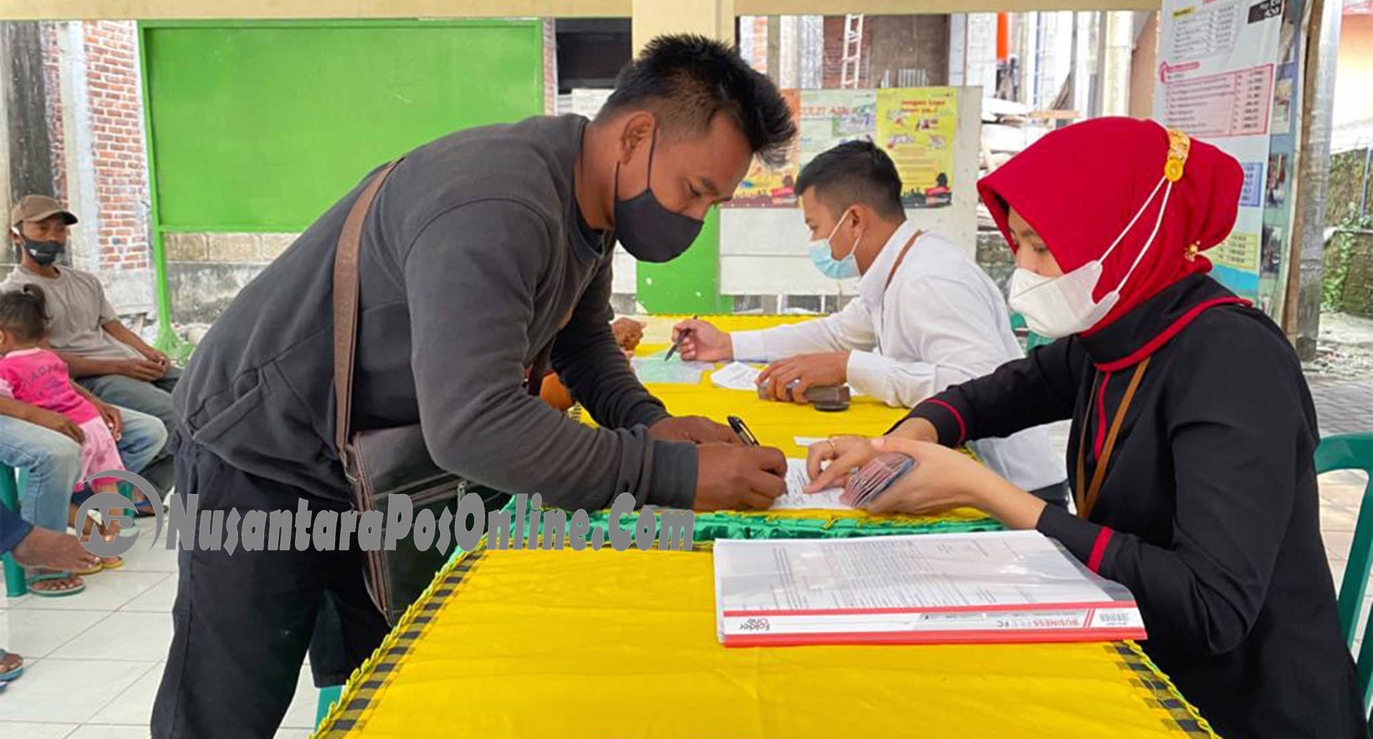 Suasana, penyaluaran ongkos kerja tahap 1 bantuan bedah rumah, yang dibiayai program DID 2021, di pendopo desa Manunggal Kecamatan Ngusikan. Rabu pagi (19/05/2021)