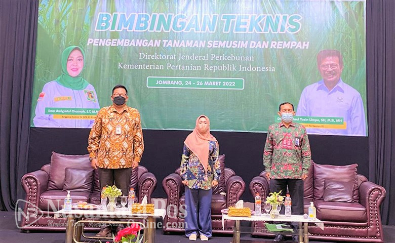 Kali ini Ning Ema, kembali bekerja sama dengan Kementrian Pertanian Republik Indonesia (Kementan-RI) menggelar Bimtek untuk petani tebu di Kabupaten Jombang. Bimtek dilaksanakan di Hotel Fatma Jombang, Kamis (24/03/2022).