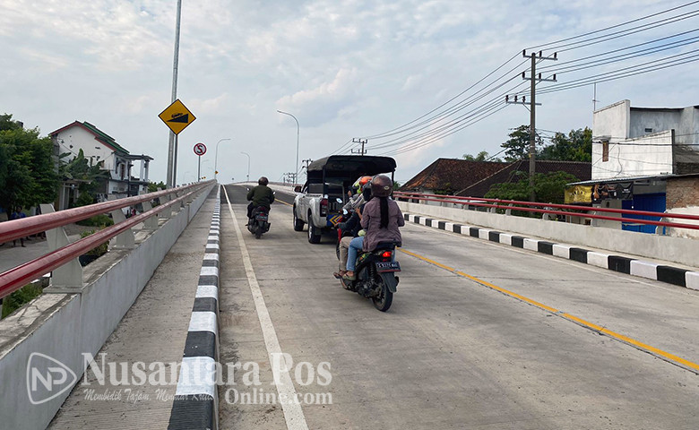 Pembukaan Uji coba jembatan baru Ploso yang membentang di atas Sungai Brantas di Kabupaten Jombang, Jawa Timur. Resmi dilakukan pembukaan uji coba selama tiga hari. Mulai hari ini Jumat – Minggu (25 – 27 Maret 2022) pada pukul 15.00 sampai 20.00 WIB. Jumat (25/3/2022). Foto : NP/Sinta