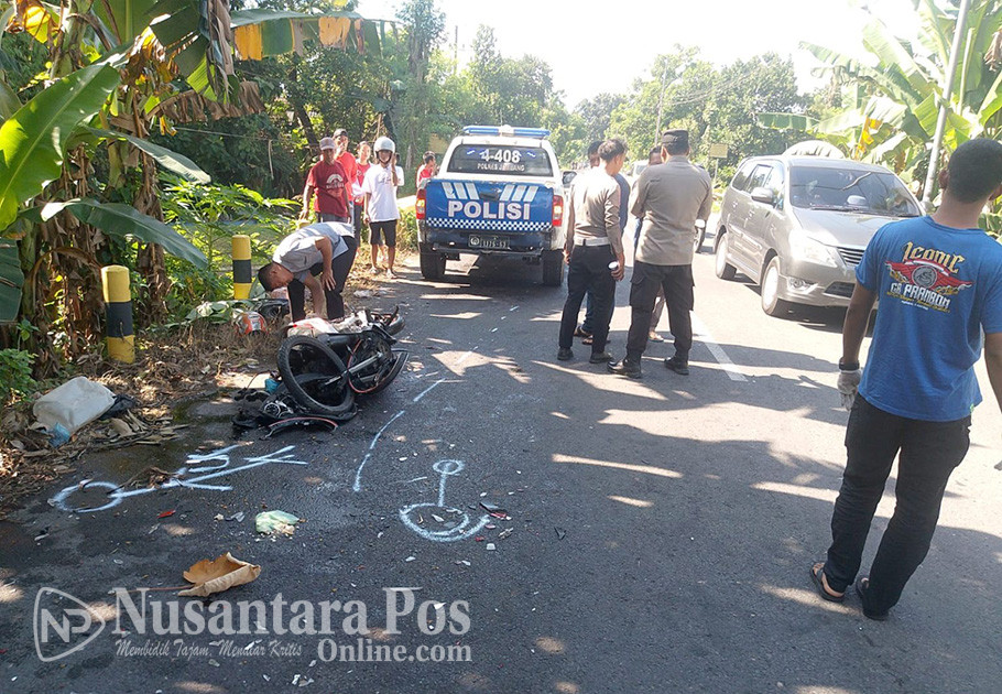 Saksi mata di lokasi, Rozikin (46), warga Dusun Padar Kidul, Desa Kesamben, mengatakan kecelakaan maut itu terjadi saat pengendara motor Yamaha Jupiter bernopol AG 6113 EBN berbocangan, gagal menyalip mobil di depannya.