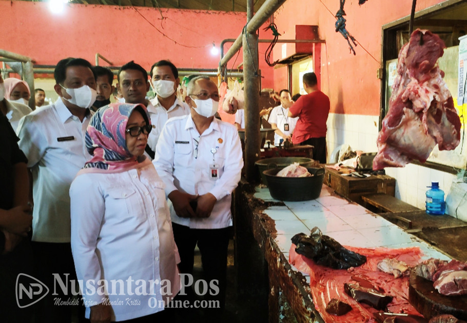 JOMBANG, NusantaraPosOnline.Com-Untuk mengantisipasi terjadinya kenaikan harga bahan kebutuhan pokok jelang perayaan Natal dan Tahun Baru (Nataru), Bupati Jombang Hj. Mundjidah Wahab, bersama Sekretaris Daerah Kabupaten Jombang, Agus Purnomo S.H, M.Si bersama para Kepala OPD yang tergabung dalam Tim Pengendalian Inflasi Daerah (TPID) Kabupaten Jombang melakukan Inspeksi Mendadak (Sidak) harga dan ketersediaan kebutuhan pokok di Pasar Citra Niaga Jombang. Rabu (21/12/2022) pagi.
