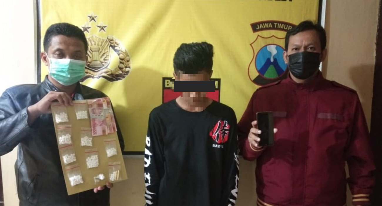 JOMBANG, NusantaraPosOnline.Com-Jadi pengedar pil dobel L, seorang pelajar AE (18) warga Kecamatan Tembelang. Dibekuk polisi. Sebanyak 400 butir pil Koplo siap edar turut diamankan polisi.