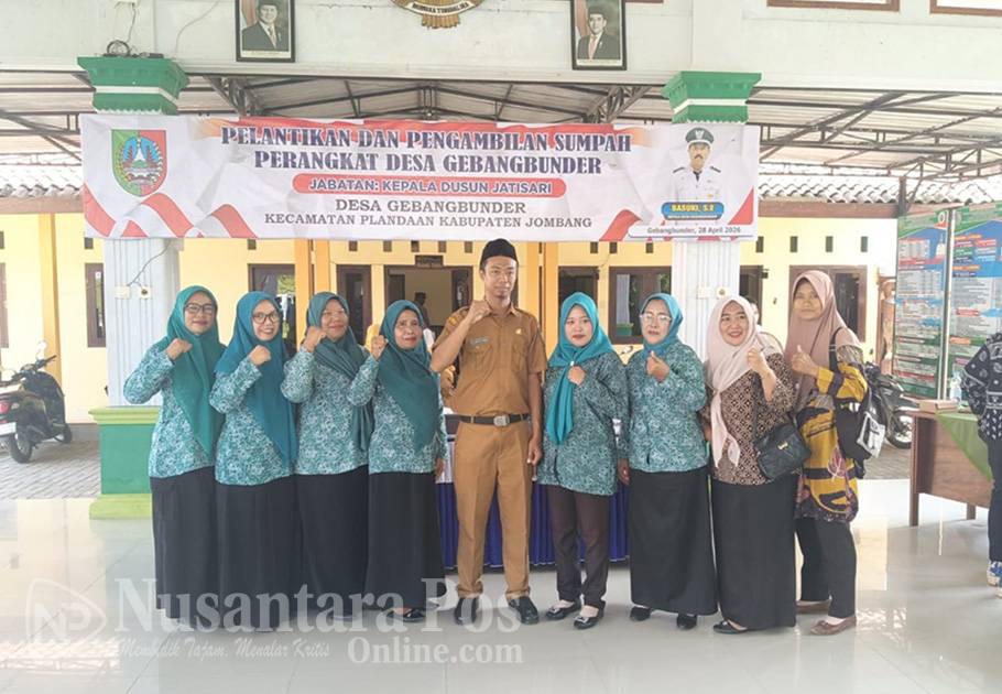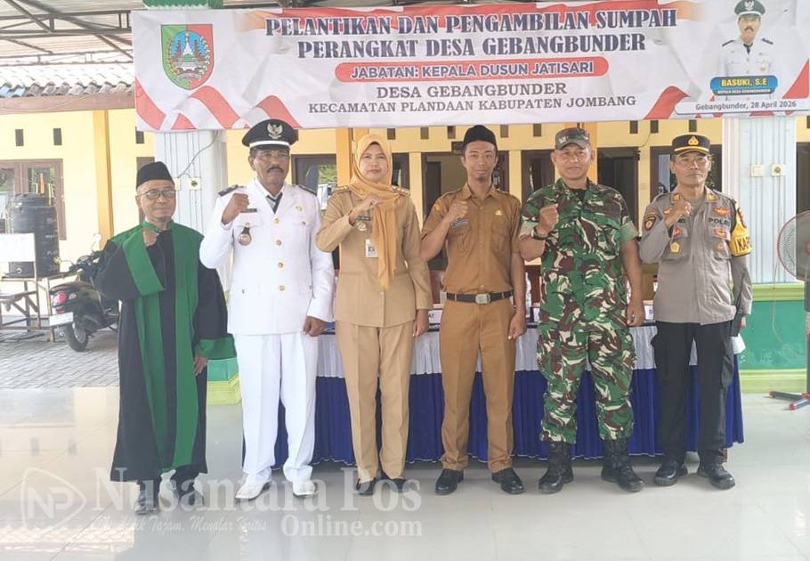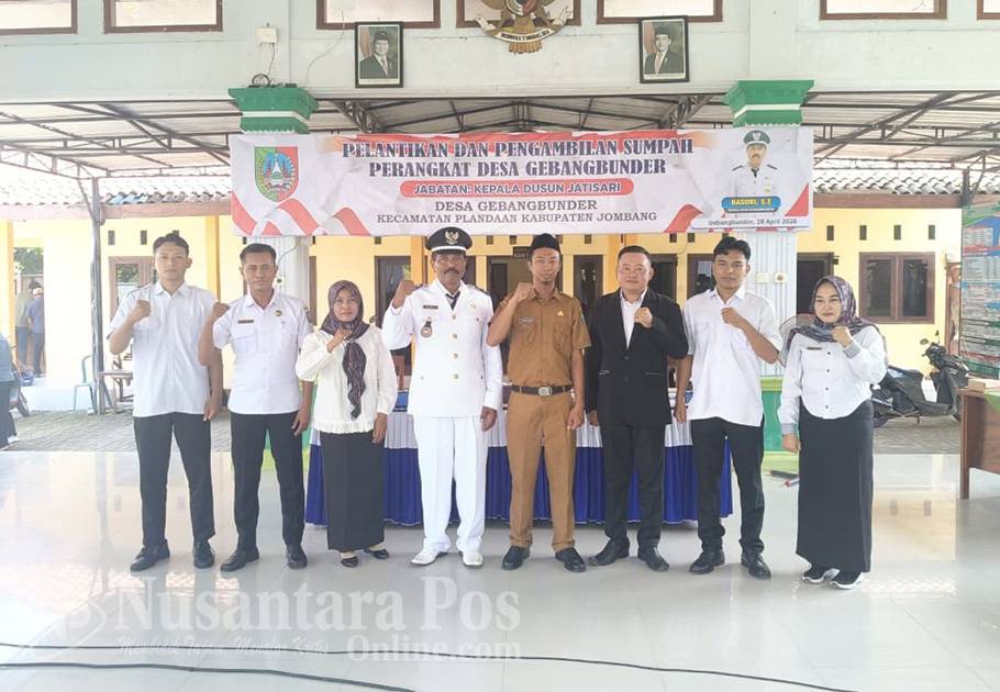 JOMBANG, NusantaraPosOnline.Com-Pemerintah Desa (Pemdes) Gebangbunder, Kecamatan Plandaan Kabupaten Jombang, resmi melaksanakan Pelantikan dan Pengambilan Sumpah Jabatan perangkat desa untuk jabatan Kepala Dusun (Kasun) Jatisari. Dalam sebuah acara yang berlangsung khidmat di balai desa setempat, pada Selasa 28 April 2026.