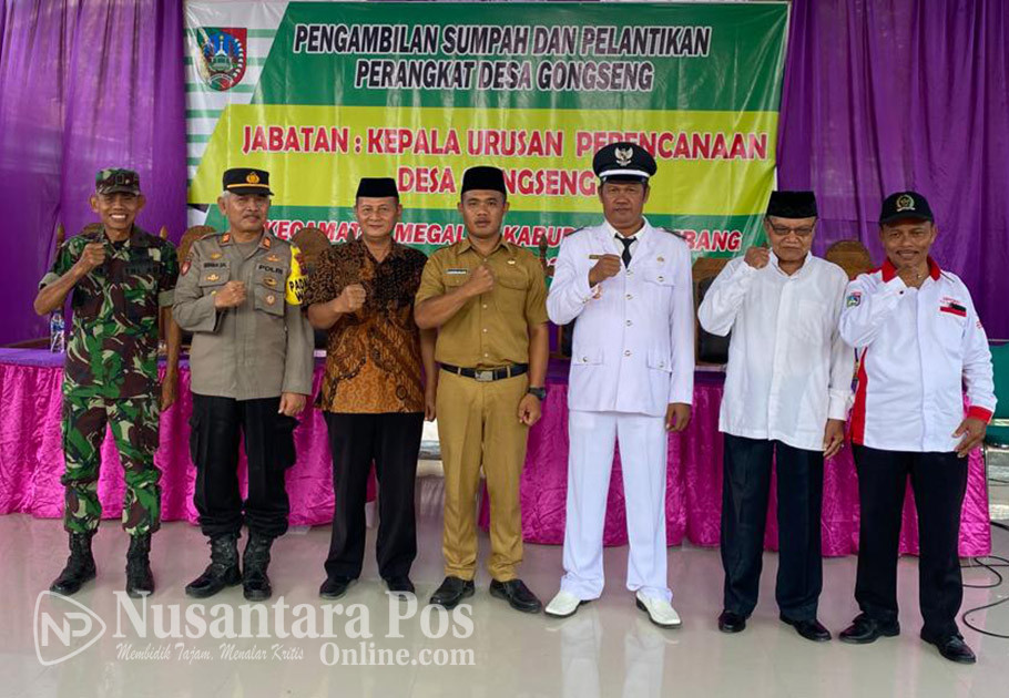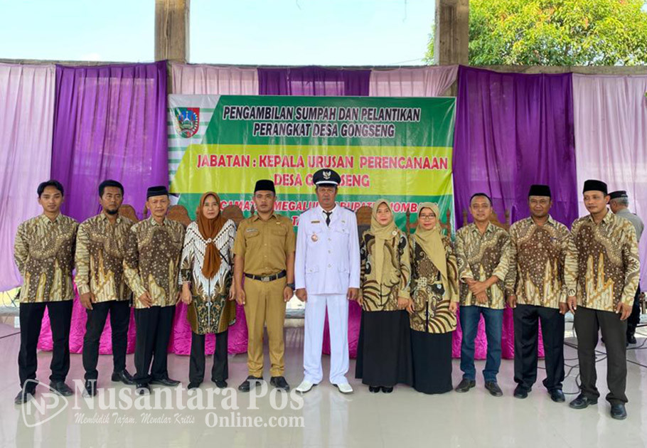 JOMBANG, NusantaraPosOnline.Com-Pemerintah Desa Gongseng, Kecamatan Megaluh, Kabupaten Jombang, Jawa Timur, melaksanakan Pelantikan dan Pengambilan Sumpah Jabatan satu orang perangkat Desa. Kegiatan dilaksanakan di Pendopo Kantor Kepala Desa Gongseng. Sabtu (17/6/2023) siang.