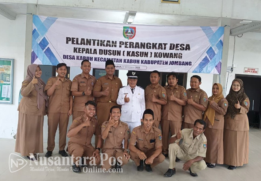 JOMBANG, NusantaraPosOnline.Com-Kepala Desa (Kades) Kabuh, Kecamatan Kabuh, Kabupaten Jombang Budijono, resmi melantik dan mengambil sumpah satu orang perangkat desa baru. Kegiatan tersebut berlangsung di Pendopo kantor desa setempat, pada Jum’at (12/09/2025) petang.