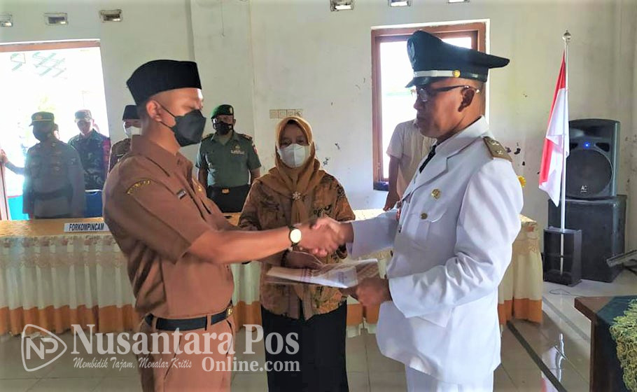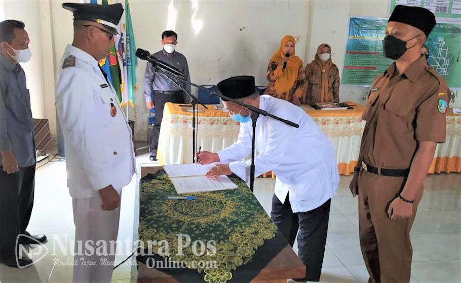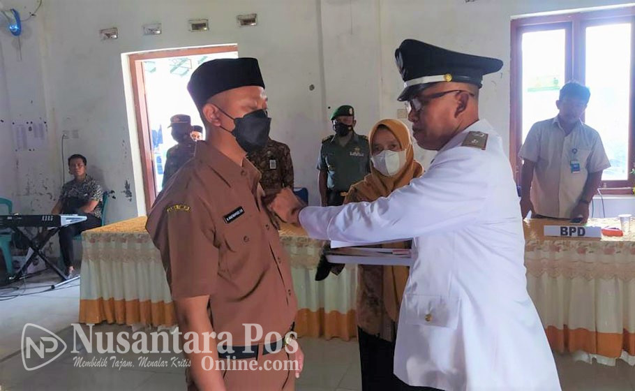 Kades Dapurkejambon M Subbatul Alimi, saat melakukan pengambilan sumpah dan melantik M. Anas Mahfudzi sebagai Kasi Kesra dan Pelayanan. Kamis pagi (19/5/2022)