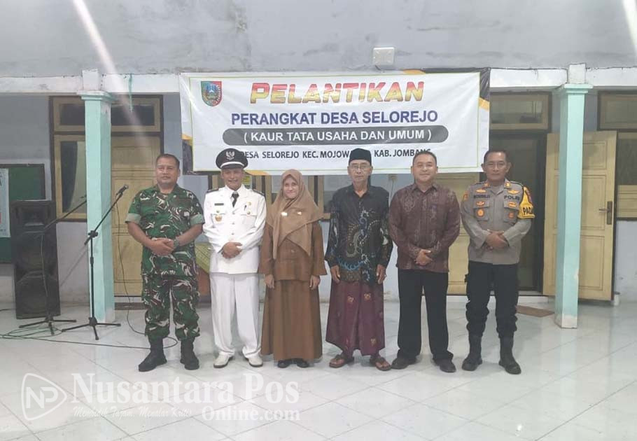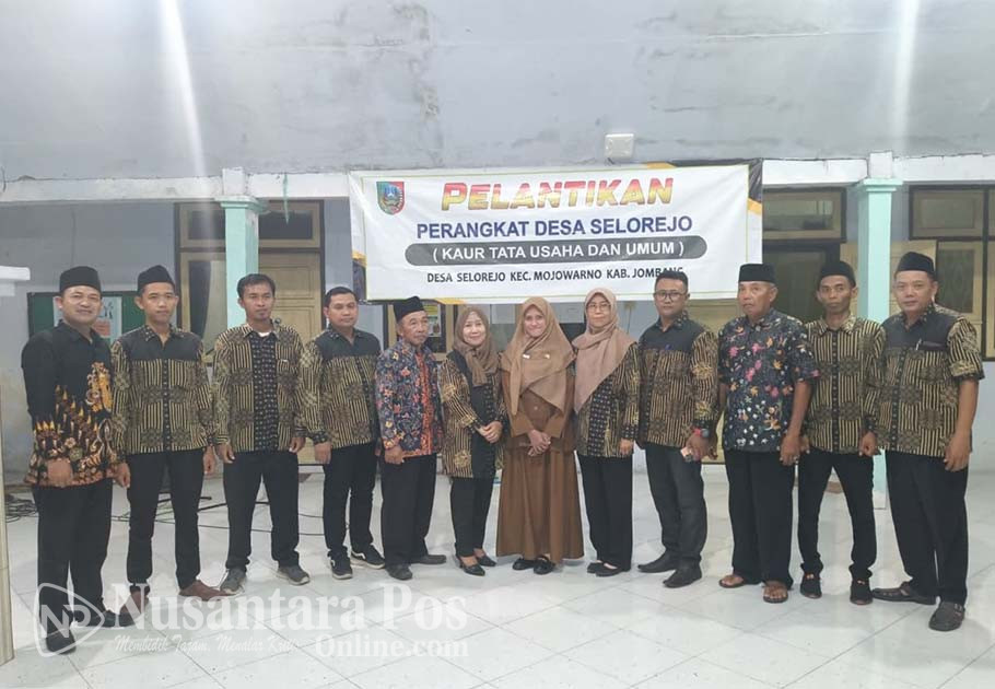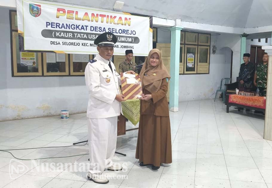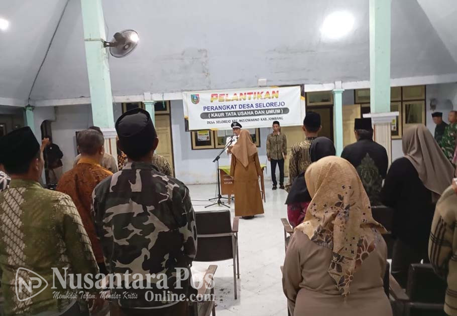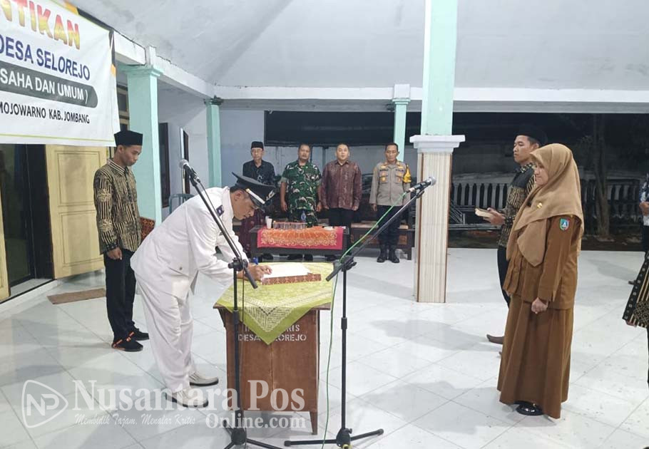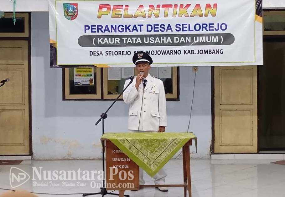 JOMBANG, NusantaraPosOnline.Com-Kepala Desa (Kades) Selorejo, Kecamatan Mojowarno, Kabupaten Jombang, Janji Ainur Rofiq, resmi melantik dan mengambil sumpah Ariena Rochmatin, S.Pd sebagai Kepala Urusan Kaur Tata Usaha dan Umum (Kaur TU dan Umum), dalam acara khidmat yang digelar di Pendopo balai setempat, pada Jumat (21/11/2025) malam.