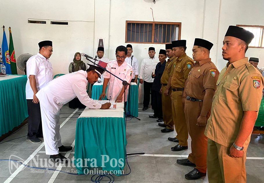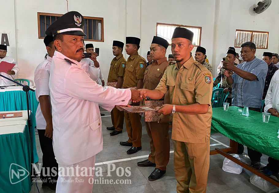 Kades Sumbermulyo, Fuad, saat melantik 4 Orang Perangkat Desa. Foto : Dok Nusantara Pos/ Sinta.