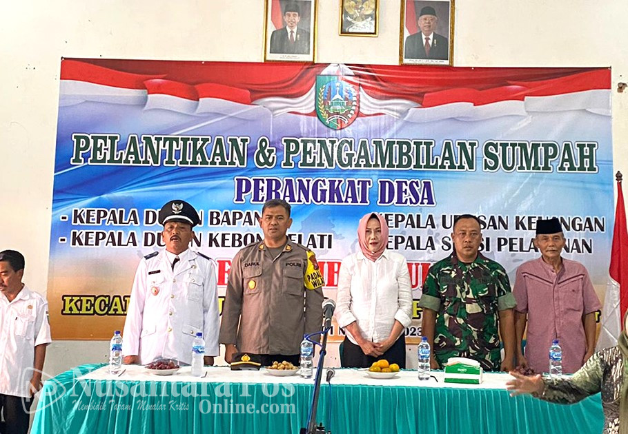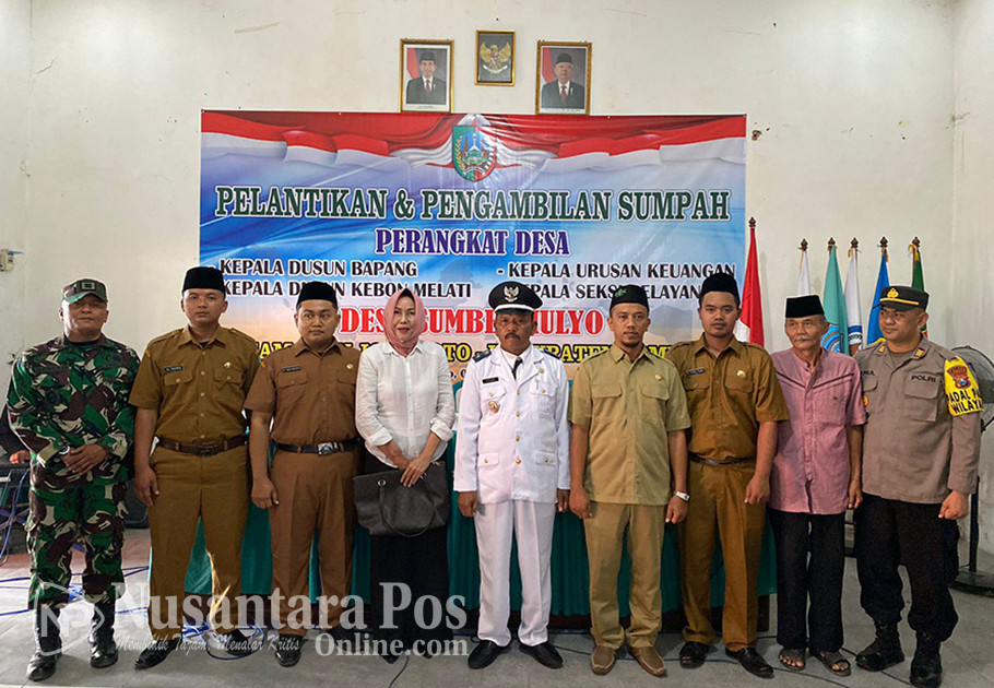 JOMBANG, NusantaraPosOnline.Com-Kepala Desa (Kades) Sumbermulyo, Kecamatan Jogoroto, Kabupaten Jombang, Fuad, melantik dan mengambil sumpah empat perangkat desa. Di pendopo kantor desa setempat. Rabu siang (1/11/2023).