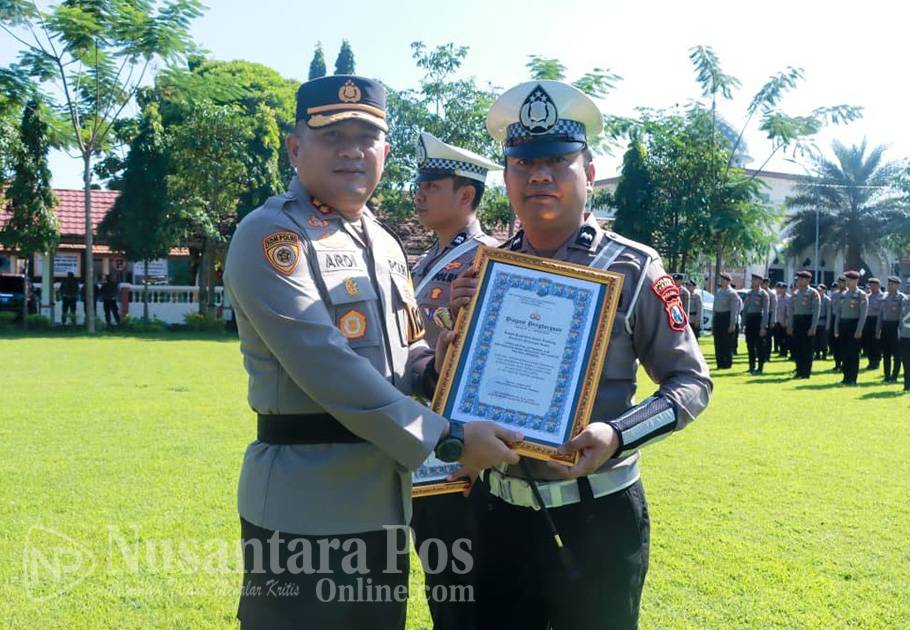 JOMBANG, NusantaraPosOnline.Com-Kapolres Jombang AKBP Ardi Kurniawan, memberikan penghargaan kepada enam anggota dari Polres Jombang dan jajaran polsek yang dinilai berprestasi dalam pelaksanaan tugas. Penyerahan penghargaan tersebut berlangsung di Lapangan Polres Jombang, Senin (16/3/2026).