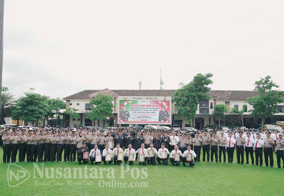JOMBANG, NusantaraPosOnline.Com-Kepolisian Resor (Polres) Jombang menggelar upacara penganugerahan Tanda Kehormatan Satyalancana Pengabdian kepada personel Polri yang telah menunjukkan dedikasi, loyalitas, serta pengabdian dalam pelaksanaan tugas kepolisian, Senin (26/1/2026).