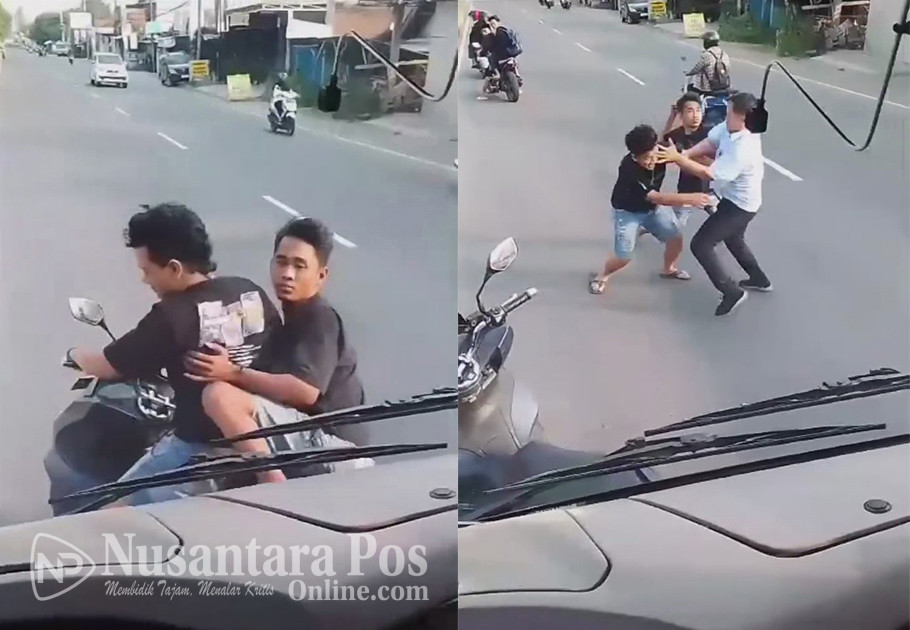 Dua pemuda mabuk yang sok jagoan di Jombang menghadang dan merusak bus Harapan Jaya, yang sedang melintas di Jalan Raya Provinsi di desa Balungbesuk, Kecamatan Diwek, Jombang. Kamis 11 Juli 2024, sekitar pukul 15.30 WIB. Berujung hihajar Massa. (Foto : Tangkapan layar Midsos).