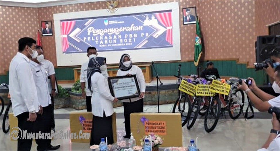 JOMBANG, NusantaraPosOnline.Com-Pemerintah Kabupaten Jombang melalui Kantor Badan Pendapatan Daerah (Bapenda) Kabupaten Jombang menganugerahkan Penghargaan, kepada 5 Kecamatan, dan 5 Desa dengan pelunasan Pajak Bumi dan Bangunan Perdesaan dan Perkotaan (PBB-P2) tecepat waktu di Kabupaten Jombang tahun 2021.