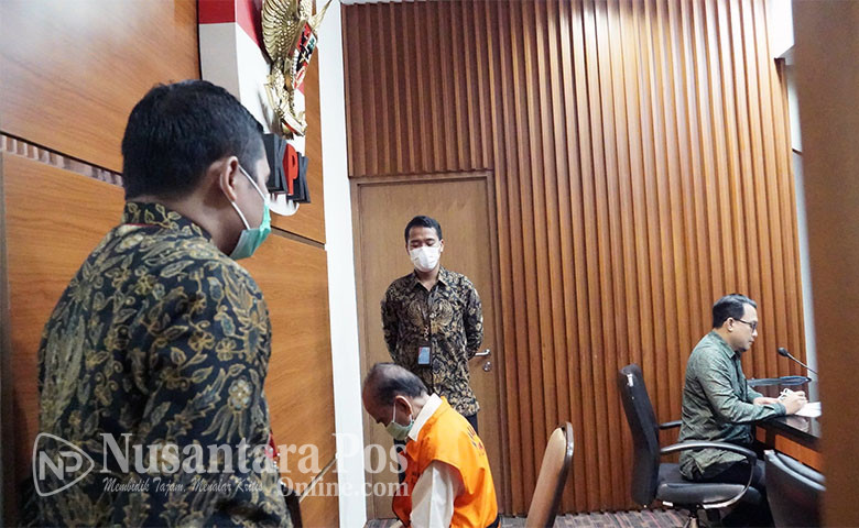 FOTO : Gubernur Riau periode 2014-2019 Annas Maamun yang kembali mengenakan rompi tahanan KPK usai dijemput paksa KPK di kediamannya. Rabu (30/3/2022) lalu.