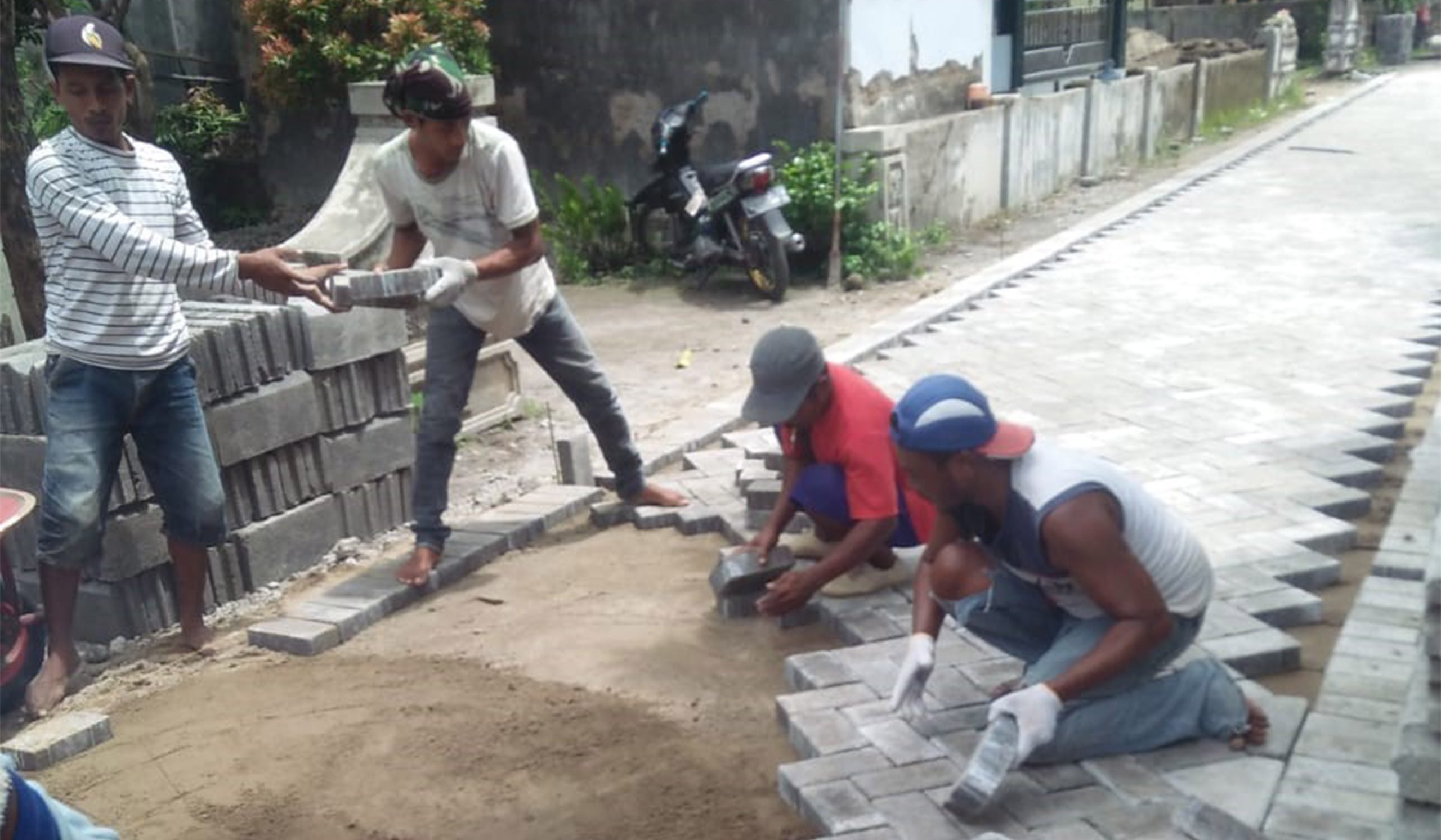 FOKUS JALAN : Suasana pengerjaan jalan paving, di Desa Jogoroto, yang dibiayai DD tahap 3 tahun 2019. (foto : Sinta)