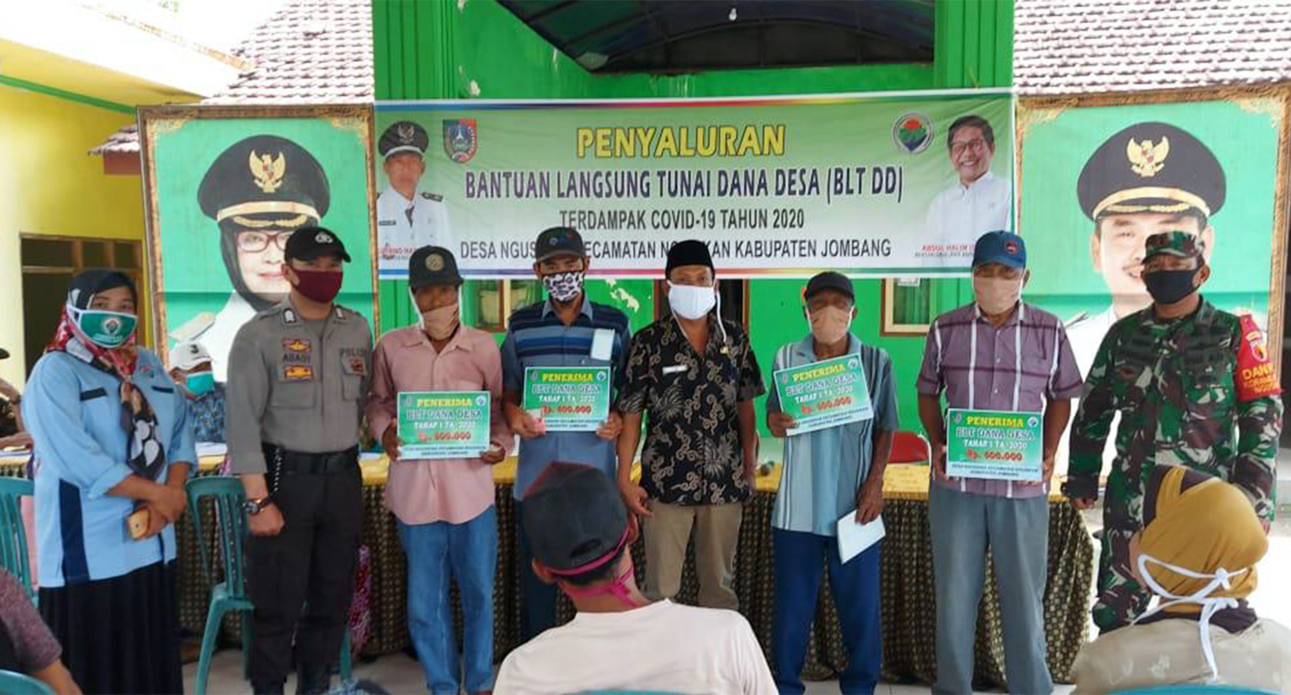 JOMBANG, NusantaraPosOnline.Com-Pemerintah Desa Ngusikan, Kecamatan Ngusikan, Kabupaten Jombang melakukan penyaluran Bantuan Langsung Tunai (BLT) Dana Desa (DD) penanganan Covid-19 kepada masyarakat, Selasa (19/05/2020).