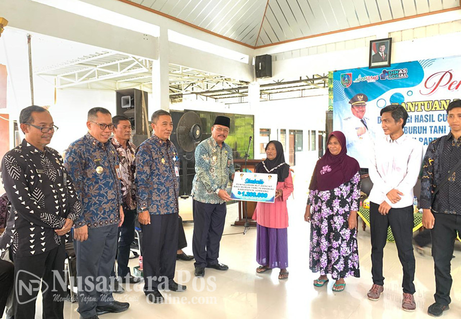 JOMBANG, NusantaraPosOnline.Com-Pemerintah Kabupaten Jombang, melalui Dinas Sosial (Dinsos), menyalurkan Bantuan Langsung Tunai Dana Bagi Hasil Cukai Hasil Tembakau (BLT-DBHCHT) tahun anggaran 2025, sebesar Rp 13.784.400.000. Di Pendopo Kantor Kecamatan Plandaan, Kabupaten Jombang, Kamis (9/10/2025) pagi.
