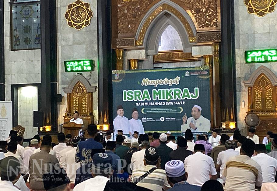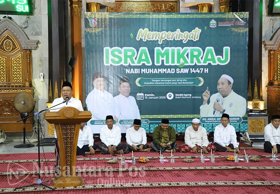 JOMBANG, NusantaraPosOnline.Com-Pemerintah Kabupaten Jombang menggelar Pengajian Umum dalam rangka memperingati Isra Mi’raj Nabi Muhammad SAW tahun 1447 H. Acara yang berlangsung khidmat ini dipusatkan di Masjid Agung Baitul Mukminin, Kabupaten Jombang, pada Kamis (15/01/2026) malam.