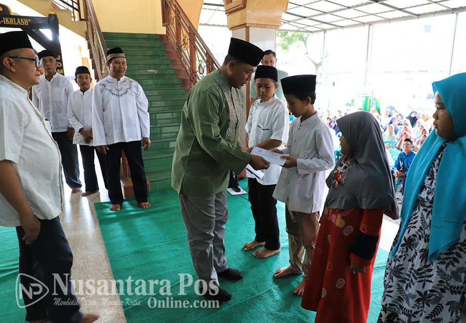 JOMBANG, NusantaraPosOnline.Com-Kegiatan Santunan Anak Yatim dan Dhuafa serta Pengobatan Gratis yang diselenggarakan oleh Lazis Masjid Al Ikhlas, Kelurahan Jelak Ombo, Kecamatan Jombang kerjasama dengan Puskesmas Jelakombo dan RS Airlangga pada Sabtu (30/3/2024) pagi, dihadiri Pj Bupati Jombang Sugiat.