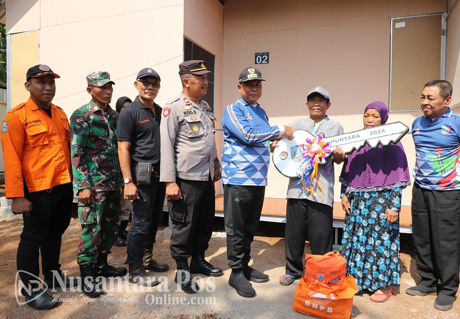 JOMBANG, NusantaraPosOnline.Com-Pemerintah Kabupaten (Pemkab) Jombang, menyerahkan kunci 12 unit Hunian sementara (Huntara) yang siap huni, kepada warga terdampak bencana tanah gerak di Dukuh Sumber Lamong, Dusun Jumok, Desa Sambirejo, Kecamatan Wonosalam, yang terjadi pada 7 Maret 2024 lalu.