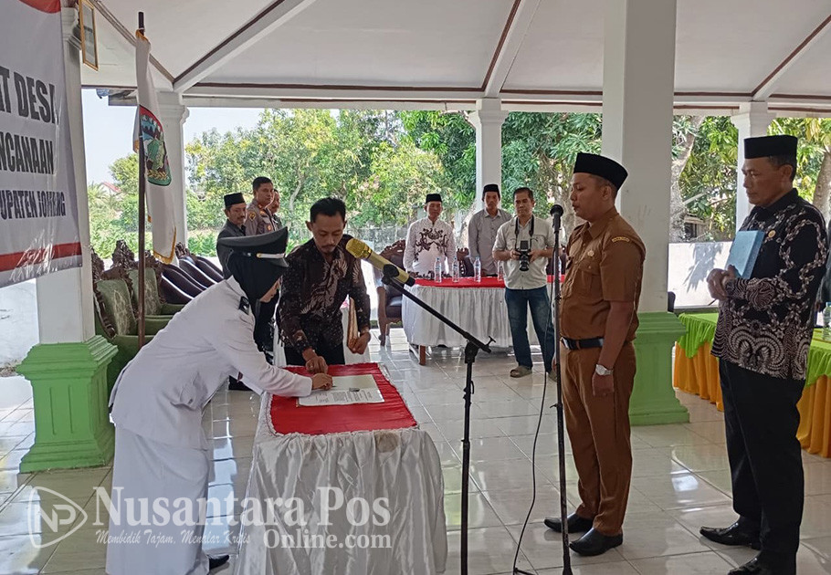 JOMBANG, NusantaraPosOnline.Com-Penjabata (Pj) Kepala Desa (Kades) Pengampon, Kecamatan Kabuh, Kabupaten Jombang, Suschori resmi melantik dan mengambil sumpah Guyub Sudirjo sebagai Kepala Urusan (Kaur) Perencanaan Pemerintah desa Pengampon. Di Pendopo kantor desa setempat, pada Jum’at (15/8/2025).