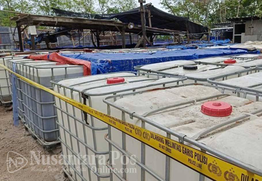 Di lokasi tersebut, polisi menemukan aktivitas pengolahan “minyak cong” atau minyak mentah yang dimasak secara tradisional menjadi BBM menyerupai solar siap edar.