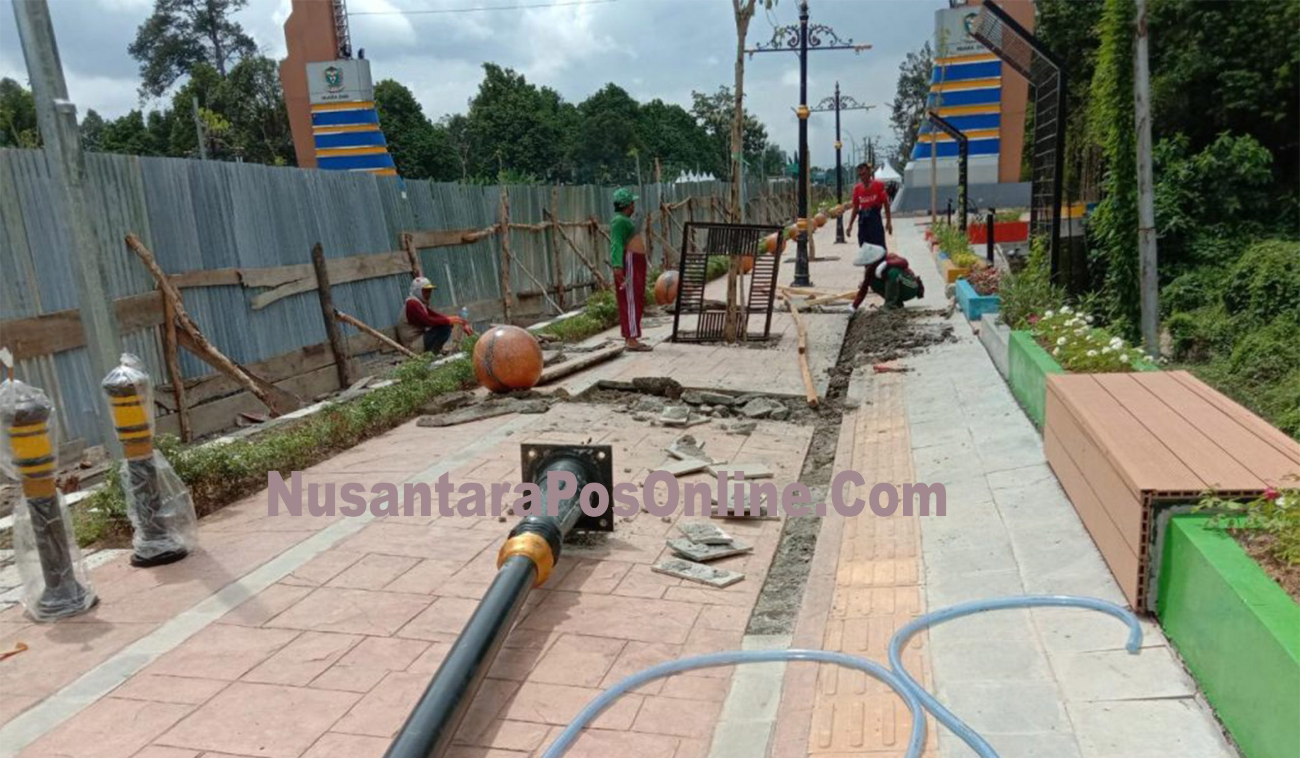 MUARA ENIM, NusantaraPosOnline.Com-Proyek pembangunan Pedestrian dan Fasilitas Penunjang Gerbang Selamat Datang Simpang Kepur, Kabupaten Muara Enim, Sumatera Selatan, Amburadul.