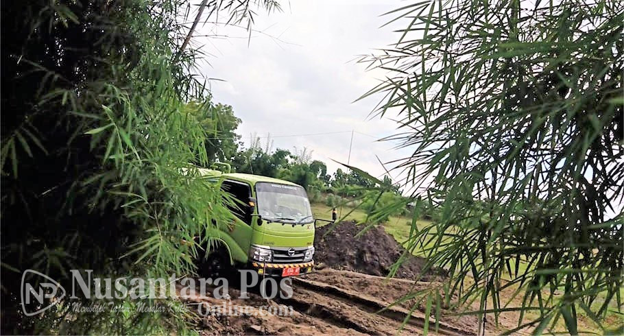 Nampak mobil penyedot tinja, plat merah milik pemkab Jombang yang ikut diterjunkan kelokasi untuk menyedot limbah bangkai ayam PT SUR 3. Minggu (23/1/2022)