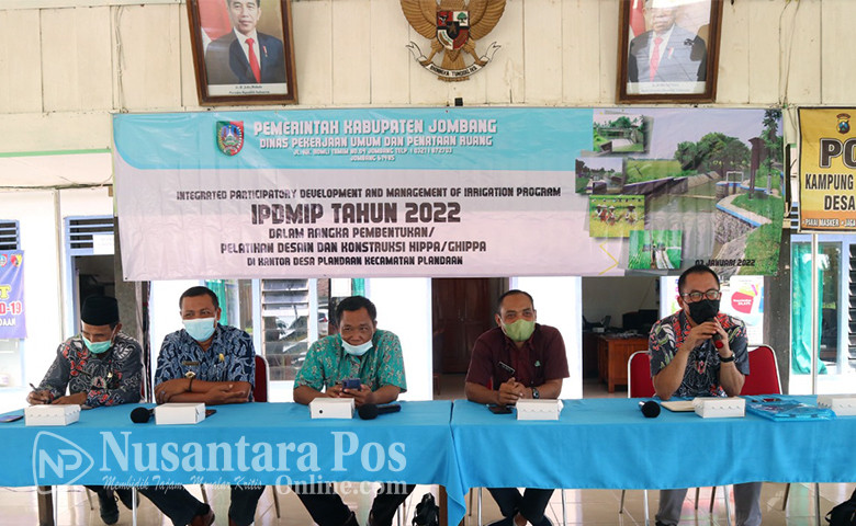 JOMBANG, NusantaraPosOnline.Com-Dinas Pekerjaan Umum dan Penataan Ruang (DPUPR) Kabupaten Jombang, memberikan pembinaan dan pelatihan Desain Kontruksi Himpunan Petani Pemakai Air (HIPPA) dan Gabungan Himpunan Petani Pemakai Air (GHIPPA) program IPDMIP (Integrated Participatory Development and Management of Irrigation Program) tahun 2022.