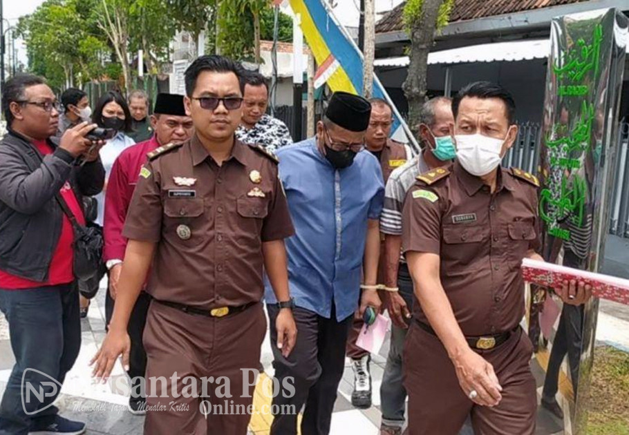 Ary Handoko alias AH (baju buru) Kasi Barang Bukti nonaktif Kejari Bojonegoro saat digelandang ke Lapas Kelas II B Jombang.