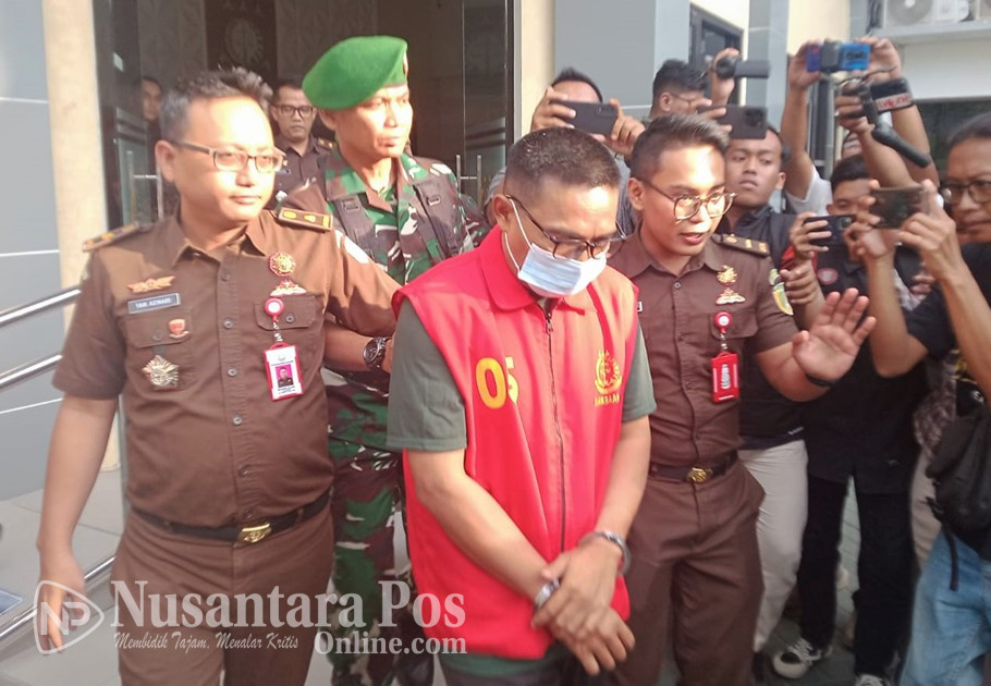 NGANJUK, NusantaraPosOnline.Com-Kejaksaan Negeri (Kejari) Nganjuk resmi menahan, Sekretaris Dinas Komunikasi dan Informatika (Diskominfo) Kabupaten Nganjuk, Sujono atau SJ, sebagai sebagai tersangka kasus dugaan korupsi dan penerimaan gratifikasi pada proyek Jaringan Intra Fiber Optik (FO) tahun 2024. Rabu (8/10/2025).