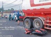 Penampakan sepeda motor Yamaha Vega nopol S 6452 QAJ rusak parah tertimpa truk yang terguling. Akibah terperosok bekas galian Jargas. Senin (2/2/2022)
