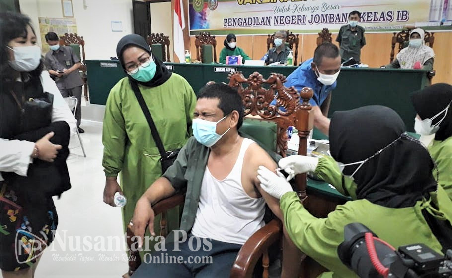 JOMBANG, NusantaraPosOnline.Com-Pemerintah Kabupaten Jombang terus menggenjot vaksinasi, termasuk vaksinasi dosis ketiga atau booster. Dukungan program vaksinasi Dosis ketiga juga datang dari pegawai dijajaran Pengadilan Negeri (PN) Jombang.