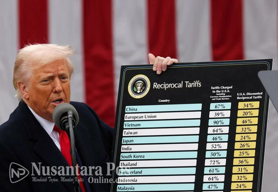 FOTO : Ilustrasi Donald Trump Saat Memaparkan Sejumlah Negara yang Kena Tarif Baru.